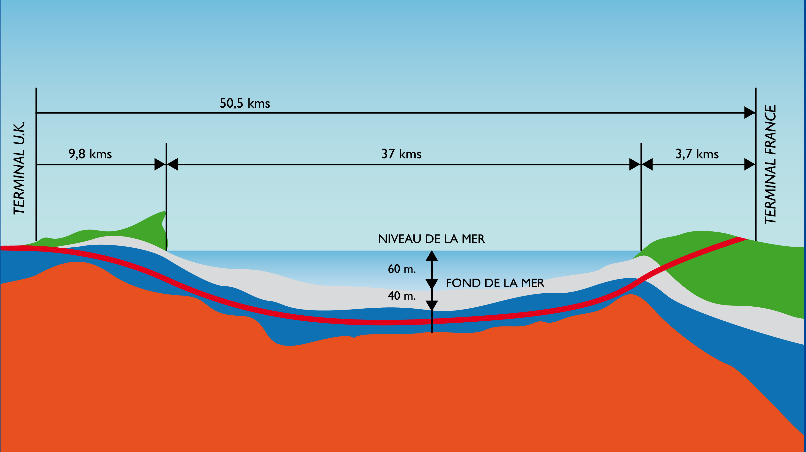 Foré dans une couche de craie bleue homogène et imperméable et construit à plus de 100 mètres au-dessous du niveau de la mer, le Tunnel est une véritable prouesse technique.