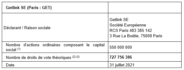 - Information relative au nombre total de droits de vote et d’actions composant le capital social
