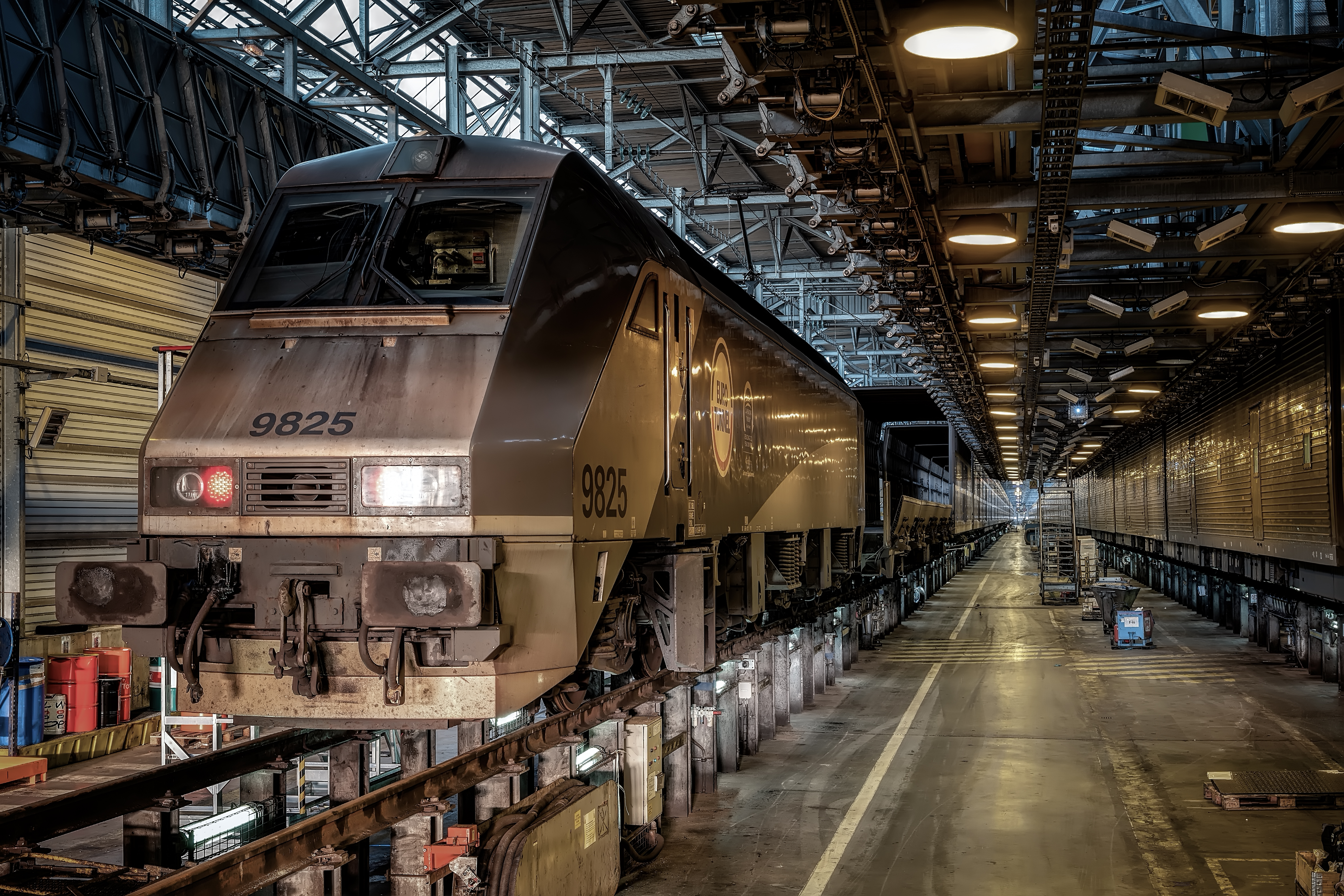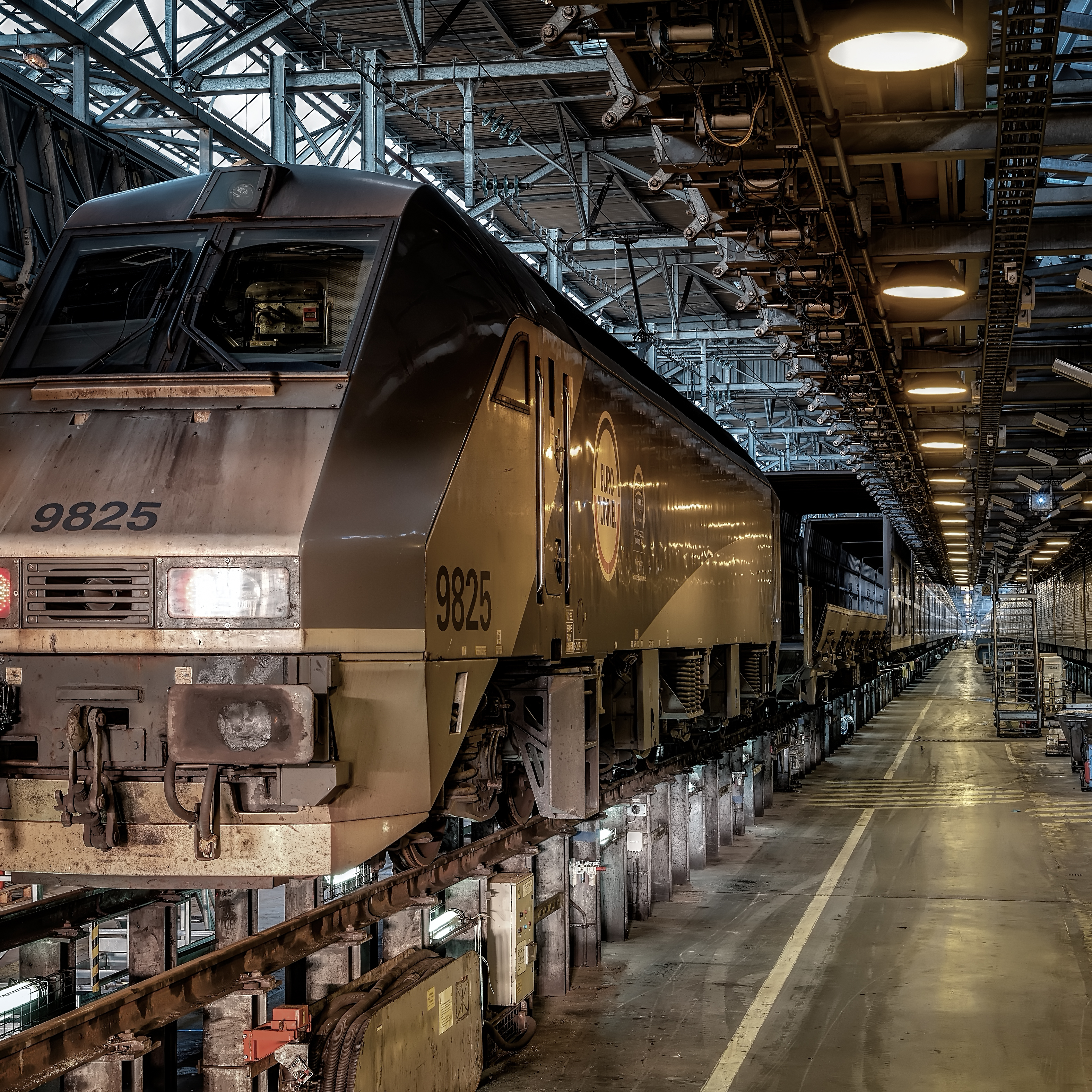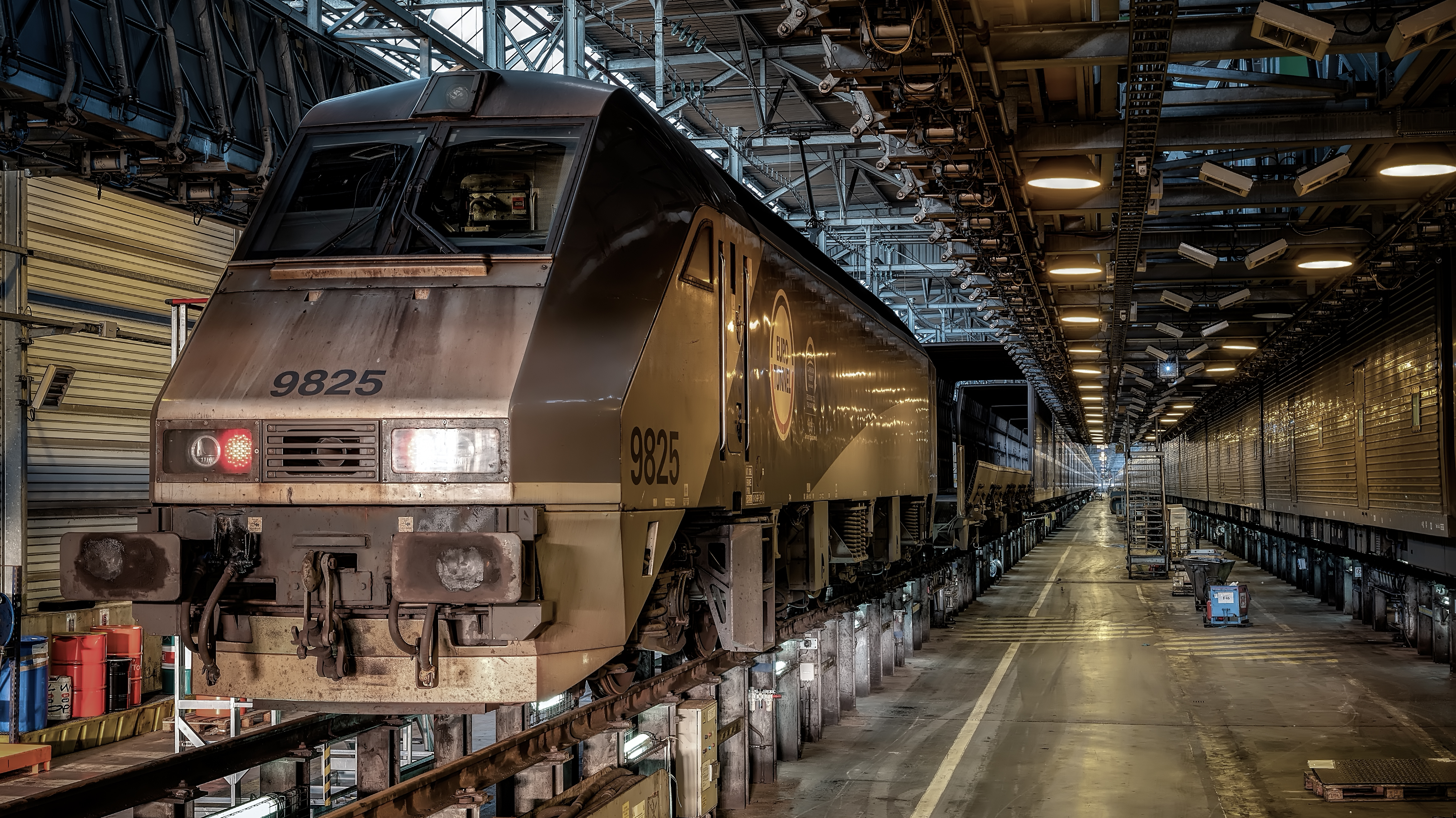 A Coquelles, le bâtiment F46 est le plus long atelier de maintenance ferroviaire au monde avec ses 828 m, permettant d'accueillir simultanément deux Shuttles complets.