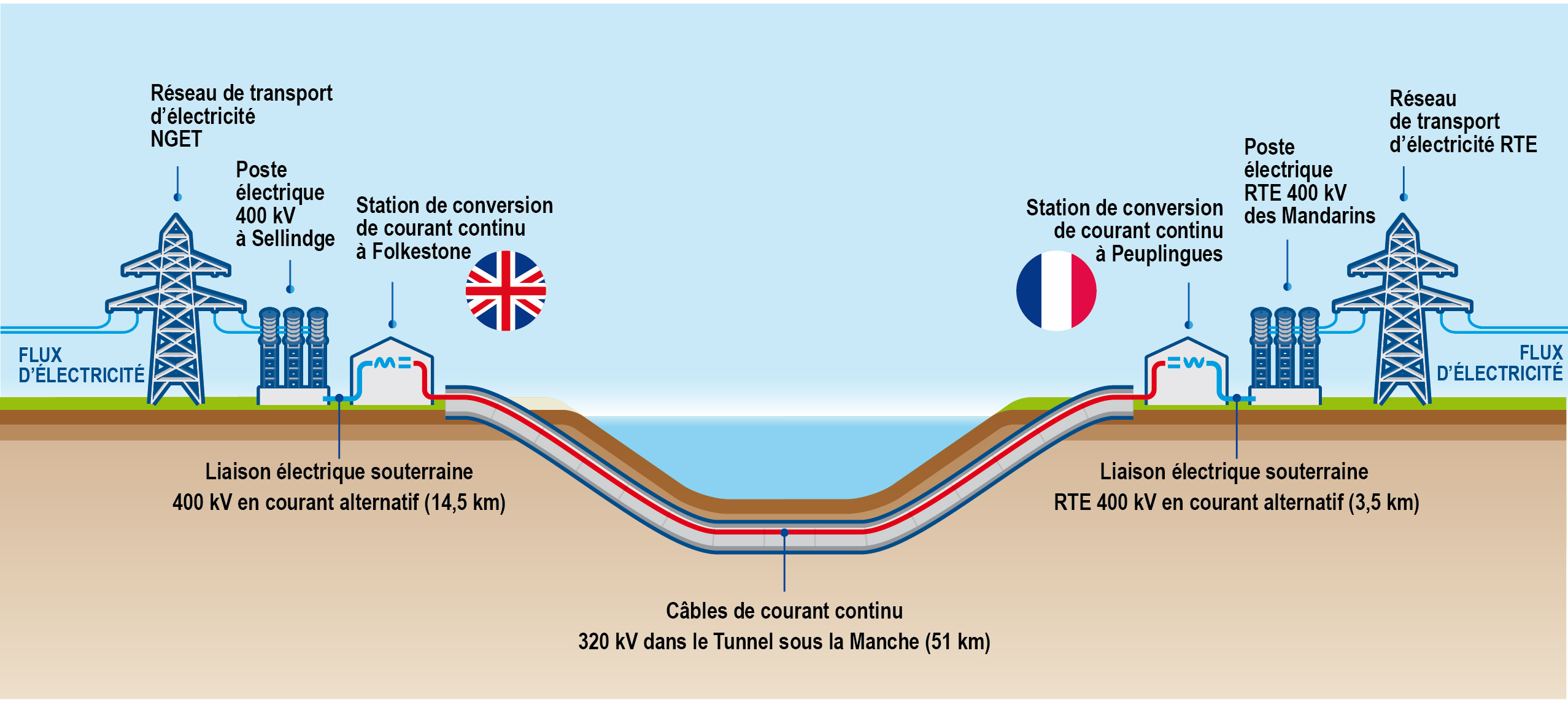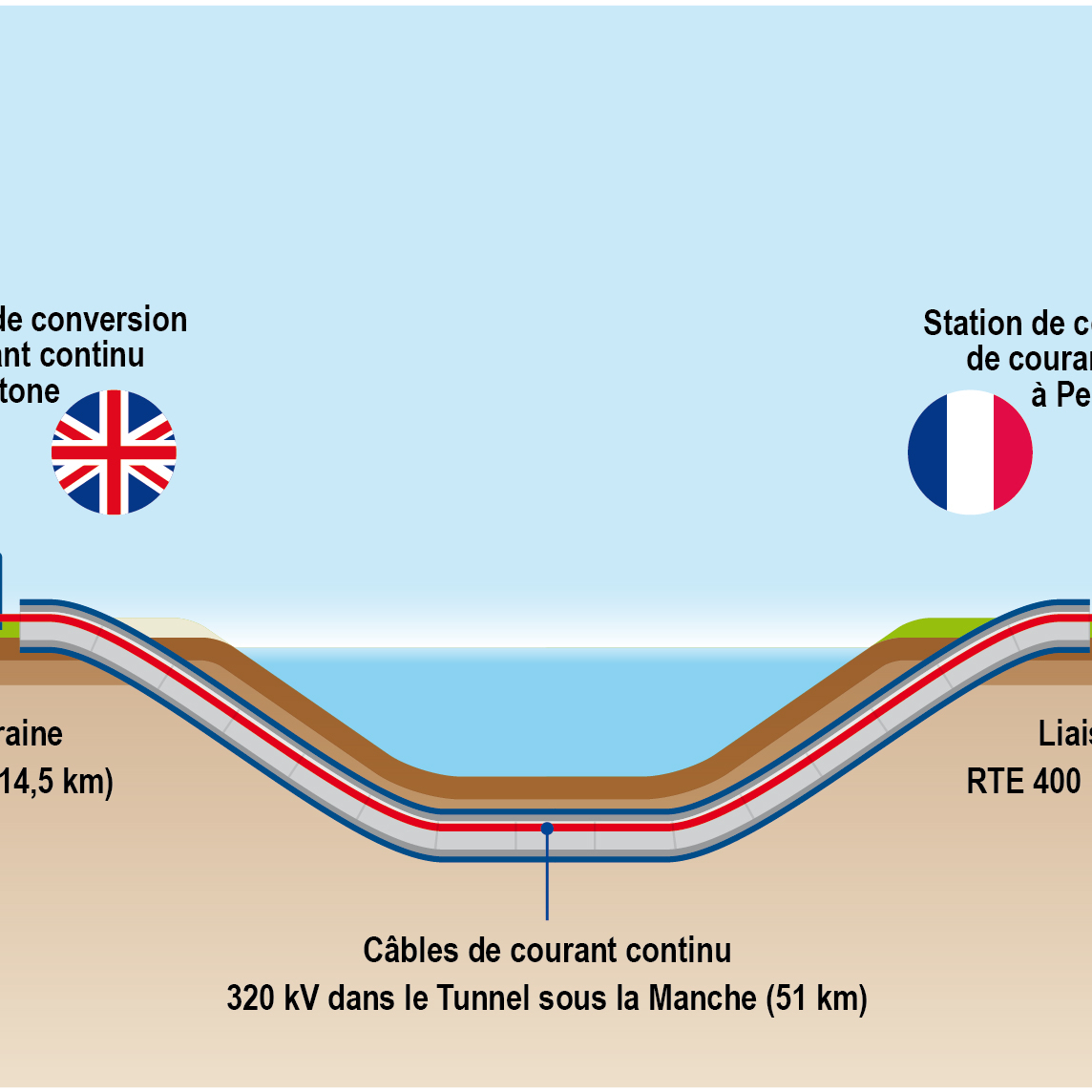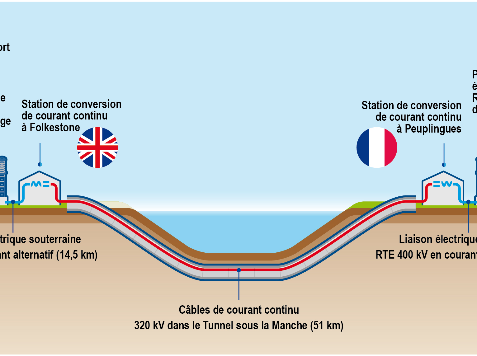 - Schéma de l’interconnexion électrique ElecLink et de ses raccordements aux réseaux de transport d’électricité nationaux